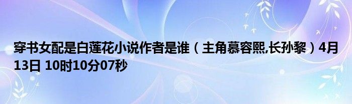 穿書女配是白蓮花小說作者是誰(主角慕容熙,長孫黎)4月13日 10時10分07秒