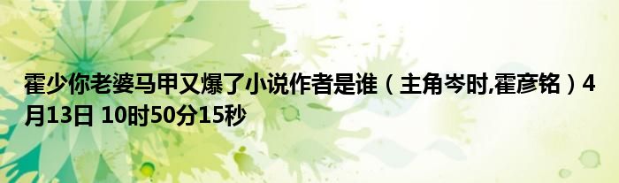霍少你老婆馬甲又爆了小說作者是誰(主角岑時,霍彥銘)4月13日 10時50分15秒