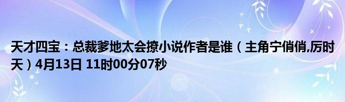 天才四寶:總裁爹地太會(huì)撩小說(shuō)作者是誰(shuí)(主角寧俏俏,厲時(shí)天)4月13日 11時(shí)00分07秒