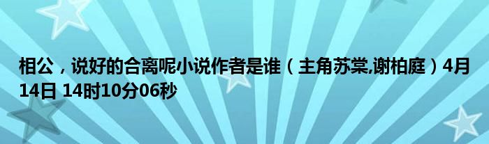 你們好,今天木子分享相公,說好的合離呢小說作者是誰,跟隨我一起瞧瞧吧!