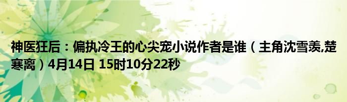 神醫(yī)狂后:偏執(zhí)冷王的心尖寵小說作者是誰(主角沈雪羨,楚寒離)4月14日 15時10分22秒