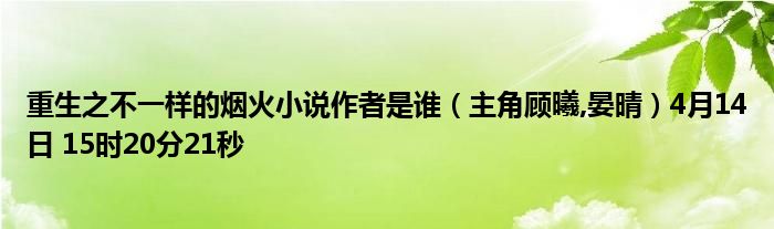 重生之不一樣的煙火小說作者是誰(主角顧曦,晏晴)4月14日 15時20分21秒