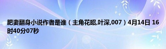 肥妻翻身小說作者是誰(主角花昭,葉深,007)4月14日 16時40分07秒