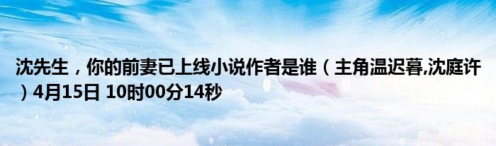 你們好,今天木子分享沈先生,你的前妻已上線小說作者是誰,跟隨我一起瞧瞧吧!
