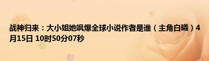戰(zhàn)神歸來:大小姐她颯爆全球小說作者是誰(主角白曦)4月15日 10時(shí)50分07秒