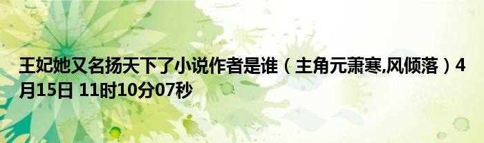 王妃她又名揚天下了小說作者是誰(主角元蕭寒,風傾落)4月15日 11時10分07秒