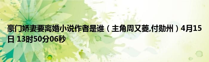 豪門(mén)嬌妻要離婚小說(shuō)作者是誰(shuí)(主角周又菱,付勛州)4月15日 13時(shí)50分06秒
