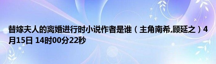 替嫁夫人的離婚進(jìn)行時(shí)小說(shuō)作者是誰(shuí)(主角南希,顧延之)4月15日 14時(shí)00分22秒