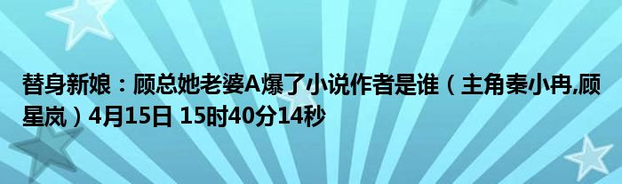 替身新娘:顧總她老婆A爆了小說作者是誰(主角秦小冉,顧星嵐)4月15日 15時(shí)40分14秒