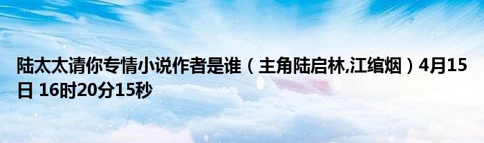 陸太太請你專情小說作者是誰(主角陸啟林,江綰煙)4月15日 16時20分15秒