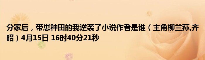 分家后,帶崽種田的我逆襲了小說作者是誰(主角柳蘭蓀,齊昭)4月15日 16時40分21秒