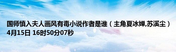 你們好,今天木子分享國師慎入夫人畫風有毒小說作者是誰,跟隨我一起瞧瞧吧!
