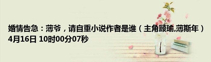 婚情告急:薄爺,請自重小說作者是誰(主角顧瑜,薄斯年)4月16日 10時00分07秒