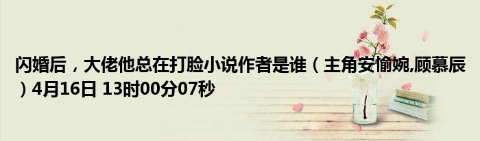 閃婚后,大佬他總在打臉小說(shuō)作者是誰(shuí)(主角安愉婉,顧慕辰)4月16日 13時(shí)00分07秒