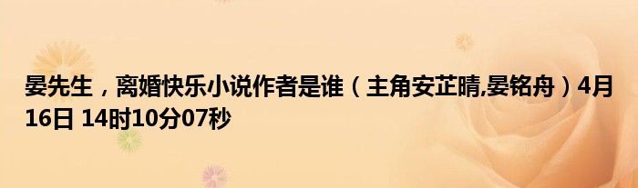 你們好,今天木子分享晏先生,離婚快樂小說作者是誰,跟隨我一起瞧瞧吧!
