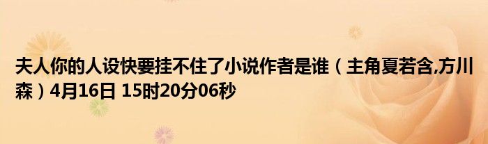 夫人你的人設(shè)快要掛不住了小說作者是誰(主角夏若含,方川森)4月16日 15時20分06秒
