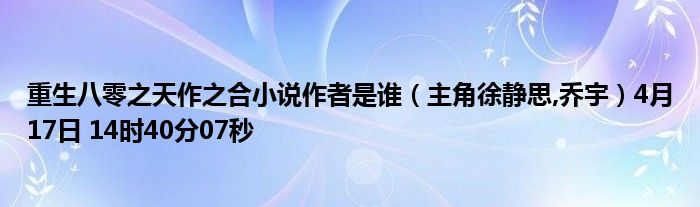 重生八零之天作之合小說作者是誰(主角徐靜思,喬宇)4月17日 14時40分07秒