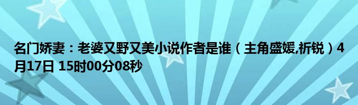 名門(mén)嬌妻:老婆又野又美小說(shuō)作者是誰(shuí)(主角盛媛,祈銳)4月17日 15時(shí)00分08秒
