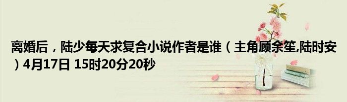 離婚后,陸少每天求復(fù)合小說作者是誰(主角顧余笙,陸時(shí)安)4月17日 15時(shí)20分20秒