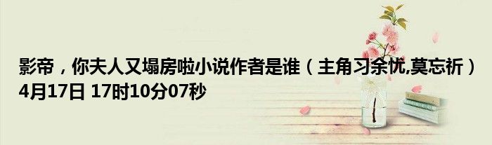 影帝,你夫人又塌房啦小說作者是誰(主角習余憂,莫忘祈)4月17日 17時10分07秒