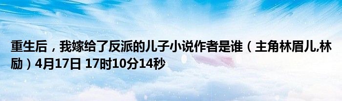 重生后,我嫁給了反派的兒子小說作者是誰(主角林眉兒,林勵)4月17日 17時10分14秒
