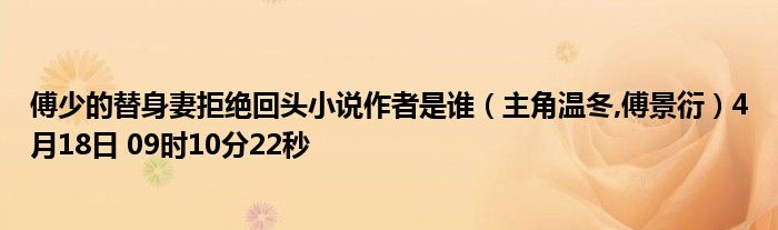 你們好,今天木子分享傅少的替身妻拒絕回頭小說作者是誰,跟隨我一起瞧瞧吧!