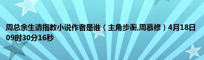 你們好,今天木子分享周總余生請指教小說作者是誰,跟隨我一起瞧瞧吧!