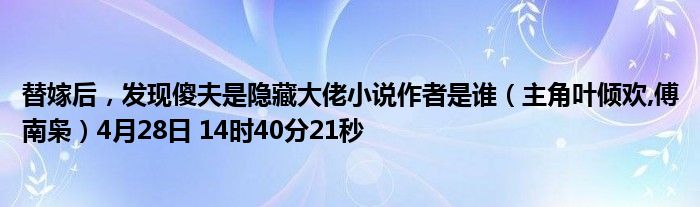 替嫁后,發(fā)現(xiàn)傻夫是隱藏大佬小說作者是誰(主角葉傾歡,傅南梟)4月28日 14時40分21秒