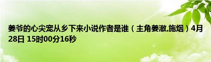 姜爺?shù)男募鈱檹泥l(xiāng)下來小說作者是誰(主角姜澈,施煙)4月28日 15時00分16秒