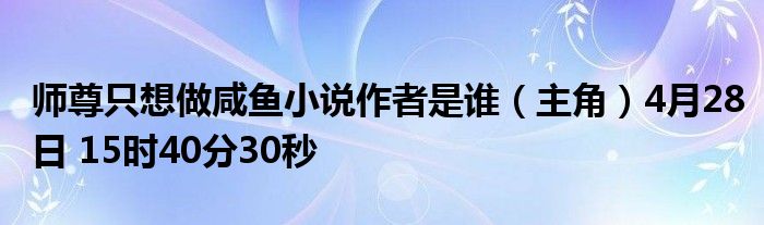 你們好,今天木子分享師尊只想做咸魚小說作者是誰,跟隨我一起瞧瞧吧!