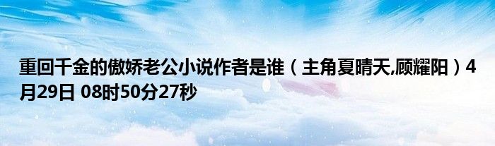 重回千金的傲嬌老公小說作者是誰(主角夏晴天,顧耀陽)4月29日 08時50分27秒