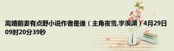 你們好,今天木子分享離婚前妻有點(diǎn)野小說(shuō)作者是誰(shuí),跟隨我一起瞧瞧吧!