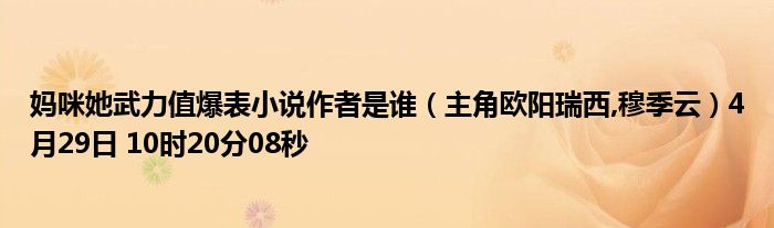 媽咪她武力值爆表小說作者是誰(主角歐陽瑞西,穆季云)4月29日 10時(shí)20分08秒