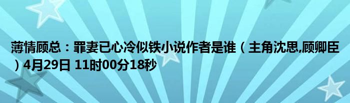 你們好,今天木子分享薄情顧總:罪妻已心冷似鐵小說作者是誰,跟隨我一起瞧瞧吧!