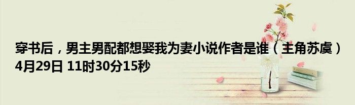 穿書后,男主男配都想娶我為妻小說作者是誰(主角蘇虞)4月29日 11時30分15秒