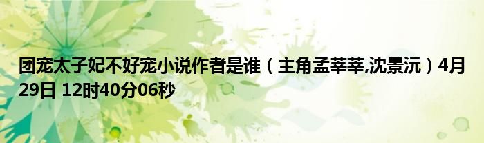 團(tuán)寵太子妃不好寵小說(shuō)作者是誰(shuí)(主角孟莘莘,沈景沅)4月29日 12時(shí)40分06秒