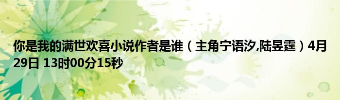 你是我的滿世歡喜小說作者是誰(主角寧語汐,陸昱霆)4月29日 13時00分15秒