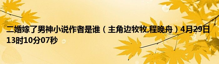二婚嫁了男神小說作者是誰(主角邊牧牧,程晚舟)4月29日 13時(shí)10分07秒