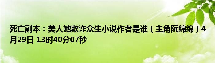 你們好,今天木子分享死亡副本:美人她欺詐眾生小說作者是誰,跟隨我一起瞧瞧吧!