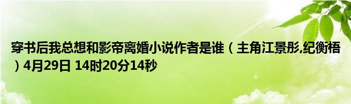 穿書后我總想和影帝離婚小說作者是誰(主角江景彤,紀(jì)衡梧)4月29日 14時(shí)20分14秒