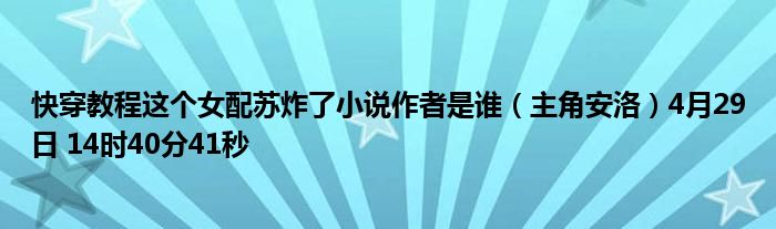 快穿教程這個女配蘇炸了小說作者是誰(主角安洛)4月29日 14時40分41秒