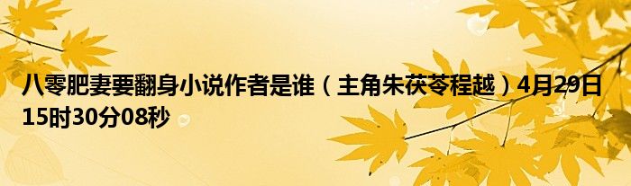 八零肥妻要翻身小說作者是誰(主角朱茯苓程越)4月29日 15時30分08秒