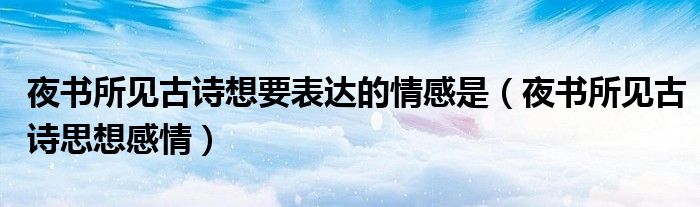 大家好,小高來為大家解答以上問題。夜書所見古詩想要表達(dá)的情感是,夜書所見古詩思想感情很多人還不知道,現(xiàn)在讓我們一起來看看吧!