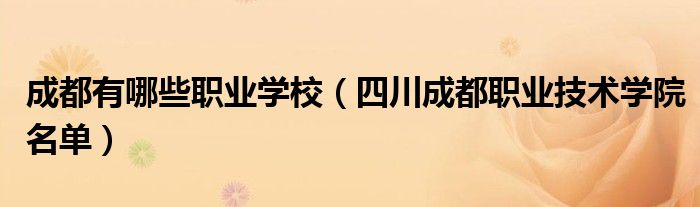 大家好,小高來為大家解答以上問題。成都有哪些職業(yè)學校,四川成都職業(yè)技術學院名單很多人還不知道,現(xiàn)在讓我們一起來看看吧!