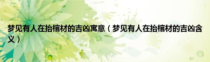 3、商人夢(mèng)見(jiàn)別人抬棺材。預(yù)示著最近的運(yùn)勢(shì)會(huì)很好,生意會(huì)很紅火,財(cái)運(yùn)會(huì)很廣,會(huì)得到很多錢(qián)出去,是個(gè)好兆頭。