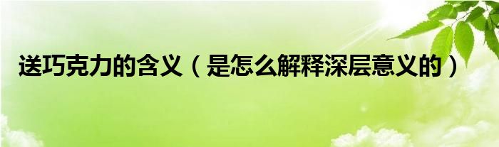 大家好,伊人來為大家解答以上問題。送巧克力的含義,是怎么解釋深層意義的很多人還不知道,現(xiàn)在讓我們一起來看看吧!