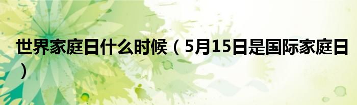 大家好,伊人來為大家解答以上問題。世界家庭日什么時(shí)候,5月15日是國(guó)際家庭日很多人還不知道,現(xiàn)在讓我們一起來看看吧!