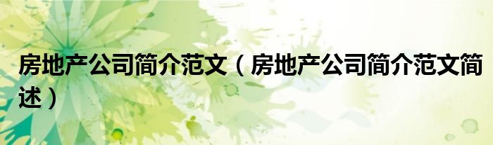 大家好,伊人來為大家解答以上問題。房地產(chǎn)公司簡介范文,房地產(chǎn)公司簡介范文簡述很多人還不知道,現(xiàn)在讓我們一起來看看吧!
