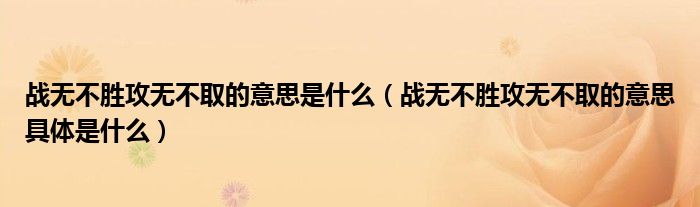 大家好,伊人來為大家解答以上問題。戰(zhàn)無不勝攻無不取的意思是什么,戰(zhàn)無不勝攻無不取的意思具體是什么很多人還不知道,現(xiàn)在讓我們一起來看看吧!