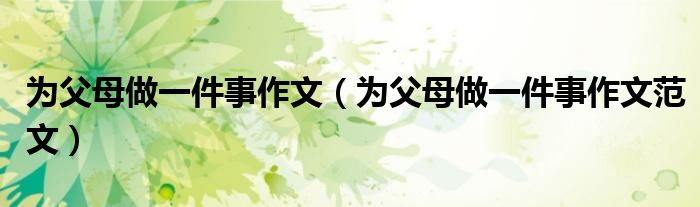 大家好,伊人來為大家解答以上問題。為父母做一件事作文,為父母做一件事作文范文很多人還不知道,現(xiàn)在讓我們一起來看看吧!